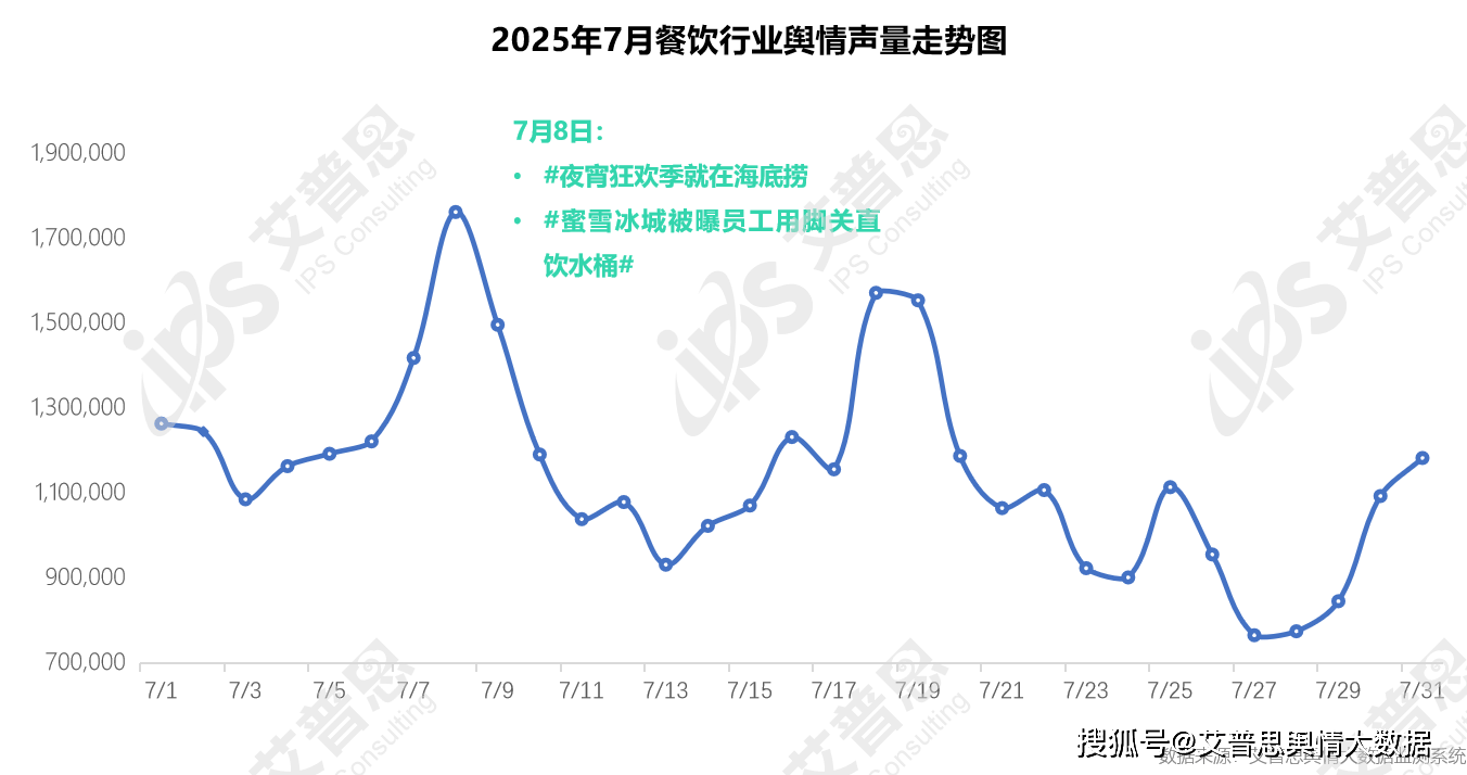 艾普思舆情大数据监测系统显示,7月,涉及餐饮行业的舆情声量为35,598,525篇次,较上月。