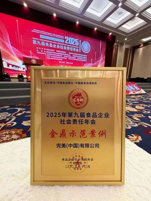 近日,由中国食物、中国副食畅通协会配合从办的第九届食物企业社会义务年会于落幕。完满(中国)无限公司(以下简称“完满公司”)凭仗正在社会义务范畴的杰出实践,荣获“金鼎示范案例”。